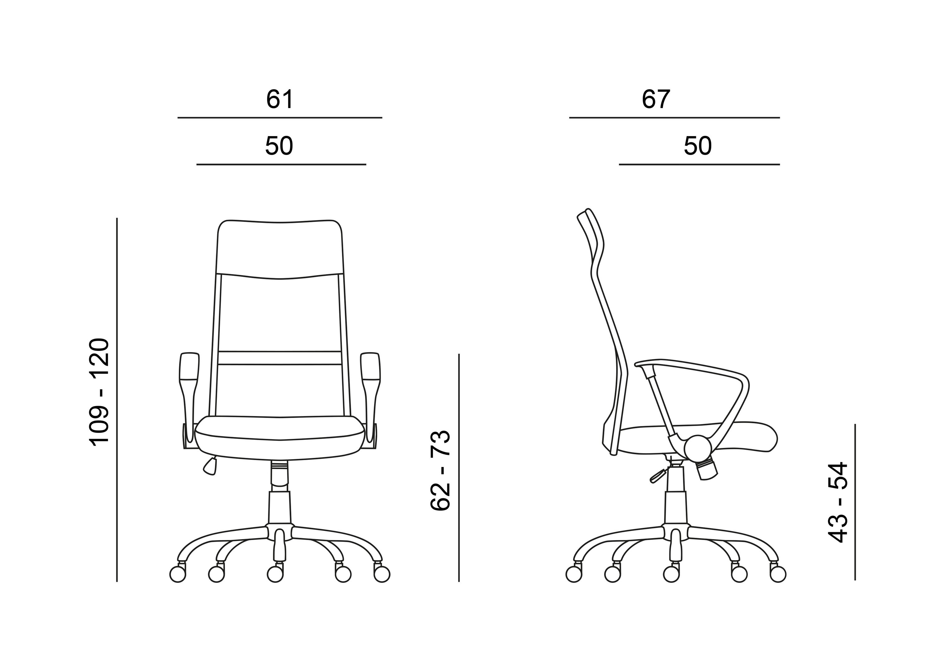 Office chair with high, breathable backrest, tilting mechanism with counterweight adjustment, lumbar support and chromed steel base.