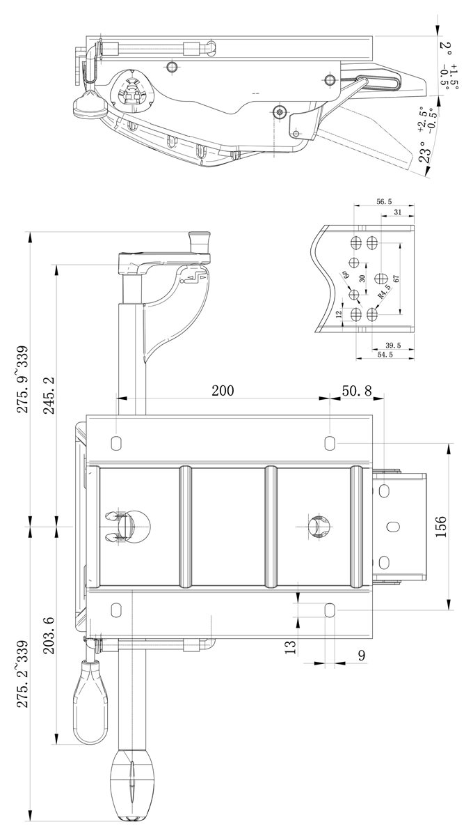 The counterbalance force adjustment increases the comfort of dynamic seating and can be performed using a retractable lever, ergonomically positioned for a range of 60 ~ 200 kg. Suitable for intensive operations 24/7 or anywhere a load capacity of up to 200 kg is required. Safety function to prevent the backrest from returning (anti-shock). The anti-shock system activates the mechanism only after balancing the forces on the backrest against the pressing force. 5 locking positions. Seat height adjustment. Tilt lock control - seat angle ranges from 0° ~ 2.0° and backrest angle from 0° ~ 23°. Seat depth adjustment control in the range of 0 ~ 70 mm with 6 locking positions.