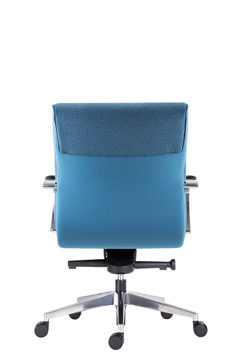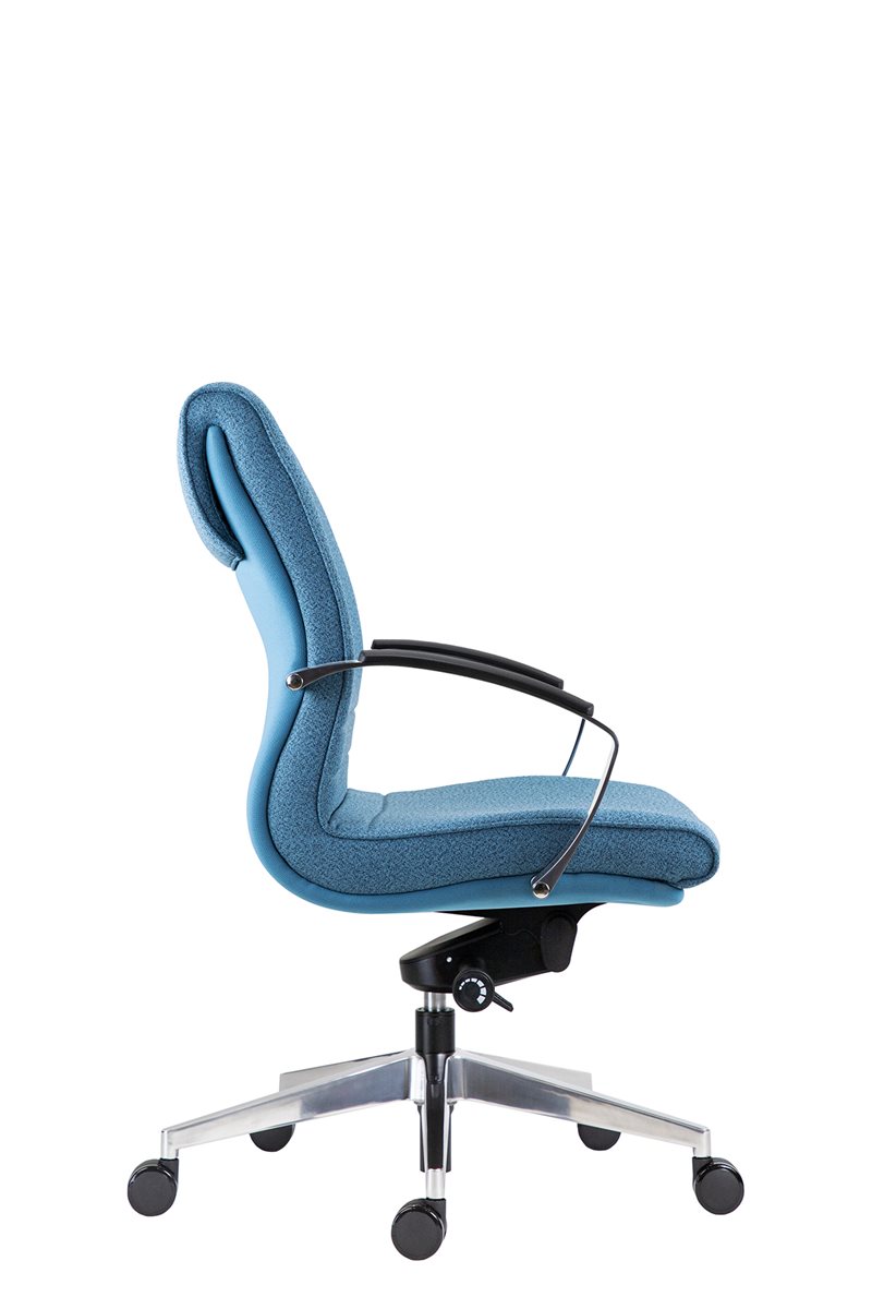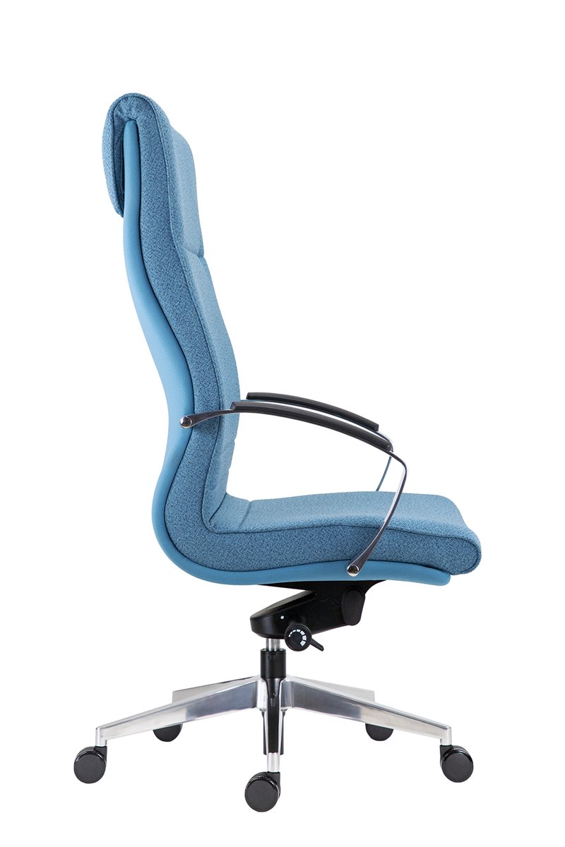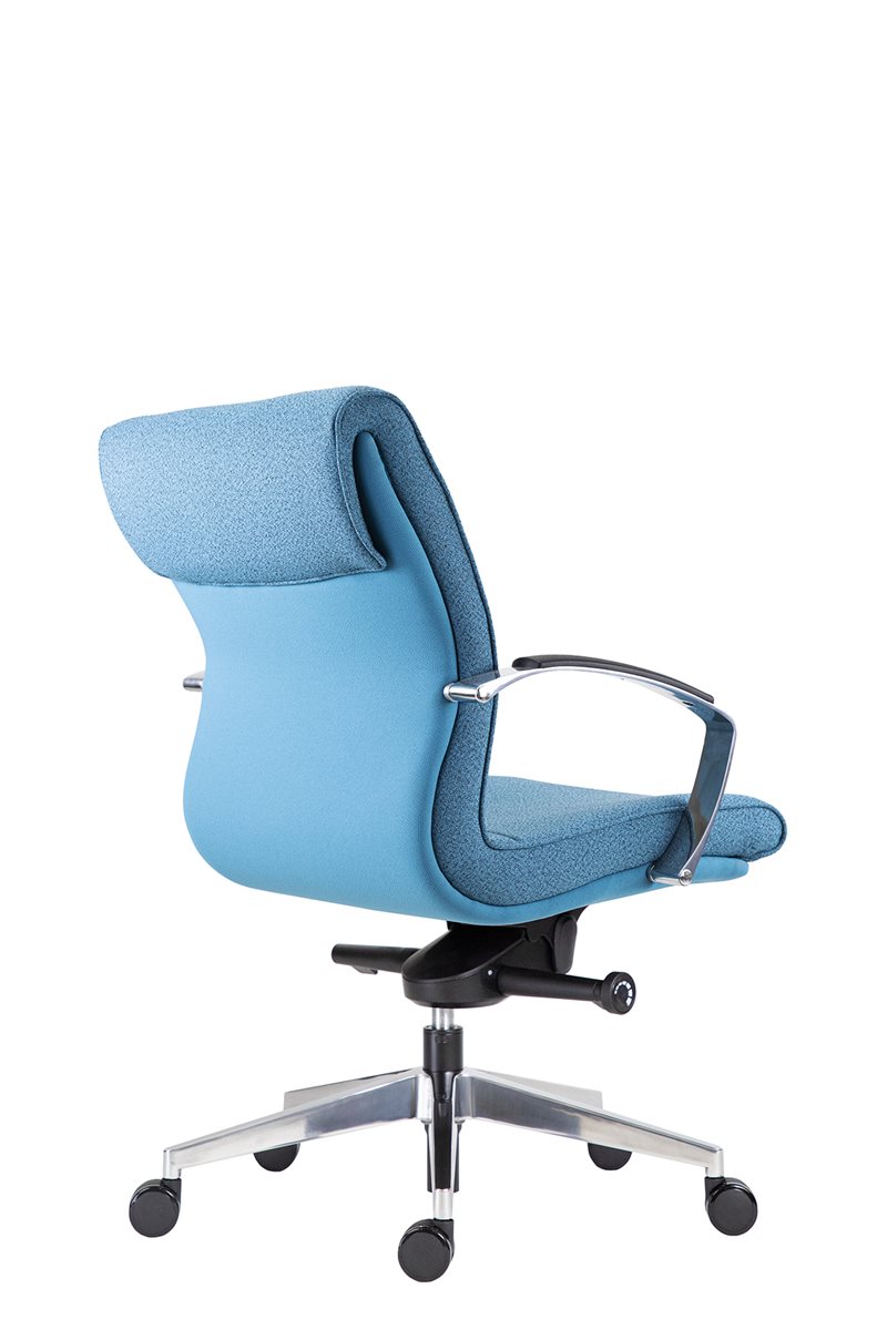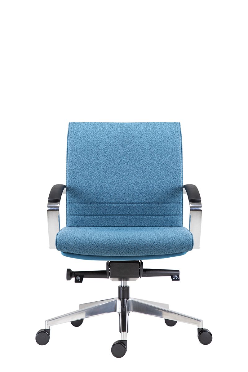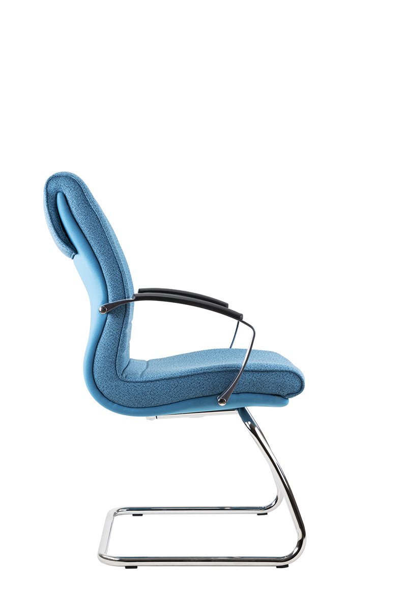 Luxusní kancelářské křeslo s vysokým nebo nízkým opěrákem doplněné jednací verzí na ližinové konstrukci.