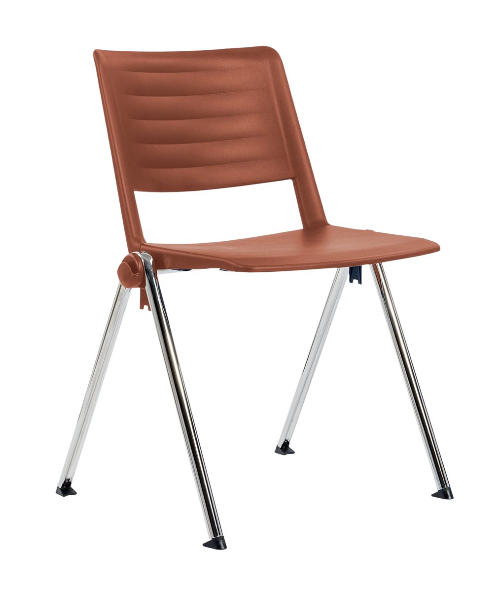 Rave, is one step beyond the standard concept of waiting/conference chair, whose basic use is neverless provided. Stackable 4 steel legs tubular frame 30x15, 2 mm thickness, black or grey epoxy varnish or chrome-plated with non-slip glides. The innovative, patented lateral plug, carries out several functions.The first is to cover and close the hole of the frame“s tube, the second one is to allow the union between the chairs, The third is to improve stability of the chairs while stacked. Plastic Colors: Blue(ral 5003), Sand (Ral1019), Black (Ral9005), Orange (Ral2003), Red (Ral3000), Green (Pantone7495EC), White (Ral9003), Grey (Ral7012). Optional padded and upholstered seat cushion (T version). Optional black plastic or polished aluminium armrests with black polypropylene elbow-rest. Optional foldaway and antipanic writing table. Optional basket for student chair. Made in EU.